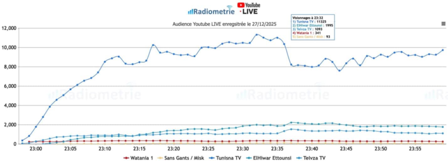 ووفقًا للأرقام، احتلت قناة "تونسنا" المرتبة الأولى عبر جميع المنصات. على سبيل المثال لا الحصر، بلغ عدد مشاهدي البث المباشر على يوتيوب يوم السبت 27 ديسمبر، وتحديدا خلال تغطية مباراة تونس ضد نيجيريا، عشرة آلاف مشاهد في نفس اللحظة، وهو رقم غير مسبوق على منصة يوتيوب.
