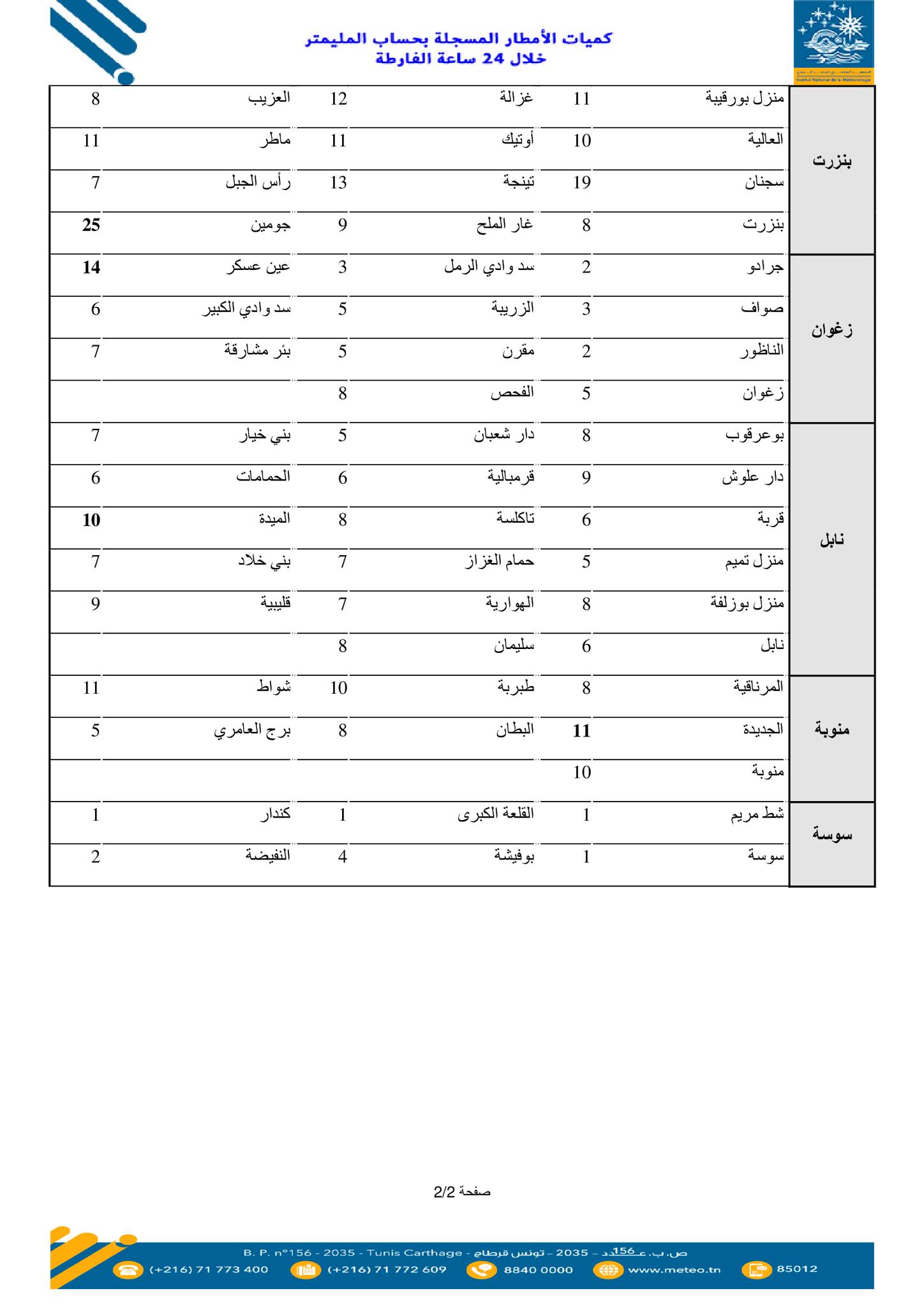 وفي ما يلي قائمة كميات الأمطار: